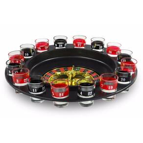 Especificações Materiais de qualidade, duradouros e fáceis de limpar: roleta de PVC resistente, copos de vidro e esferas de aço. Peso aproximado: 1116g. Dimensões: Roleta aproximadamente 30cm de diâmetro e 5cm de altura. Copinho: 03.05cm de diâmetro e 04.05cm de altura. 15ml cada copinho