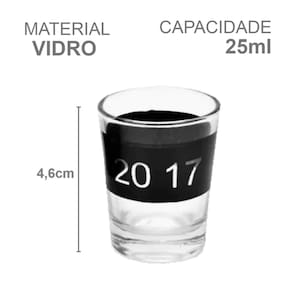 Copos: 3,05cm (diâmetro) x 4,06cm (altura), capacidade de 25ml.