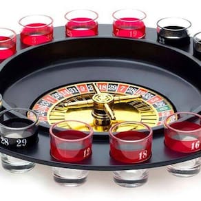 Vamos ver se é valente mesmo. Jogo de roleta com 16 copos para shot. Faça a sua aposta e quem perder tem que virar Material roleta: plástico, Material copos: vidrodescrição:Encha os copos com as bebidas e alguns com água se quiser, rode a roleta jogando a bolinha em seguida, o número que cair corresponderá ao copo que o jogador deverá tomar.Um produto ideal para quem curte jogar e beber entre amigosEste Jogo não é recomendado para criançasEspecificações Técnicas:Dimensão do Produto: Roleta: 29cm de diâmetro x 4,5cm de altura sem os copos Copos: 3,5cm de diâmetro boca x 4,7cm de alturaMaterial: base Pvc Copo De VidroCor: Preto, Vermelho e douradoConteúdo:01 Roleta numerada de 0 a 3616 Copos02 Bolas Pequenas