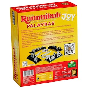 Jogo Rummikub Joy Palavras - GrowO jogo Rummikub Joy Palavras da Grow é a versão divertida do clássico Rummikub, com o desafio de formar palavras longas para vencer. As palavras completas podem ser colocadas na mesa, ou letras adicionadas às palavras atuais, proporcionando uma dinâmica única. No final de cada turno, o jogador deve ter adicionado pelo menos uma nova peça, garantindo pontuação.Diferenciais:desenvolve o pensamento lógico.Promove a criatividade na formação de palavras.Ideal para jogar em família ou com amigos.Mais sobre o Produto:As letras podem ser separadas na mesa e utilizadas para novas palavras.A palavra mais longa formada deve conter pelo menos uma letra inicial do jogador.Todas as palavras devem ser válidas e únicas.Dicas de uso:Planeje sua jogada com antecedência, formando palavras estratégicas.Utilize as letras disponíveis na mesa de forma inteligente para potencializar sua pontuação.Incentive a interação e o raciocínio rápido entre os jogadores, tornando a experiência ainda mais dinâmica.Ficha técnica:Marca: Grow;Nome do produto: Jogo Rummikub Joy Palavras;Idade recomendada: A partir de 7 anos;Selo Inmetro: CE-BRI/ICEPEX-N 01264-25;Contém: 120 Pedras cartonadas, 4 Suportes, 1 Saco plástico, 1 Regras e 1 Bloco de anotações. Homologação Inmetro: CE-BRI/ICEPEX-N 01264-25-33 Marca: Não Informado Ean: 7908010146844