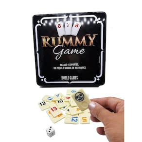O jogo é baseado no tradicional jogo do Oriente Médio de Okey. O Rummy se tornou recentemente o jogo mais jogado em toda Europa e Estados Unidos e que chega ao Brasil com força total pois é muito empolgante e Existe até Campeonato Mundial. Semelhante ao Rummy jogado com cartas de baralho tradicional. As cores dos números nos ladrilhos são como naipes das cartas. E a numeração também se assemelha ao do baralho tradicional. Conforme os jogadores começam a colocar mais e mais peças em jogo, as opções para seus próximos turnos podem se tornar mais complexas, desafiadoras e empolgantes. Como se joga Rummikub Cada jogador começa com seu suporte para esconder suas peças e recebe 14 peças. O jogo conta com 106 peças, em quatro cores diferentes, sendo que cada cor possui dois conjuntos numerados de 1 a 13, totalizando 104 peças, além de duas peças coringas. Cada jogador na sua vez tem duas ações, sendo necessário escolher uma: Colocar uma ou mais peças na mesa ou comprar uma peça. Se o jogador optar por colocar uma peça na mesa ele precisa respeitar as combinações permitidas pelo jogo. Existem dois tipos de combinações: os grupos e as sequências. Para mais detalhes ver Manual de instruções incluso no jogo. Contém: 106 Pedras brancas com numeração Colorida de 1 a 13, sendo 2 Coringas, nas cores Azul / Amarelo/ Vermelho / Preto 4 suportes de plástico. 1 Estojo em lata. 1 Manual de instruções. Composição: Melanina, Plástico, Metal. Ean: 7897262429174
