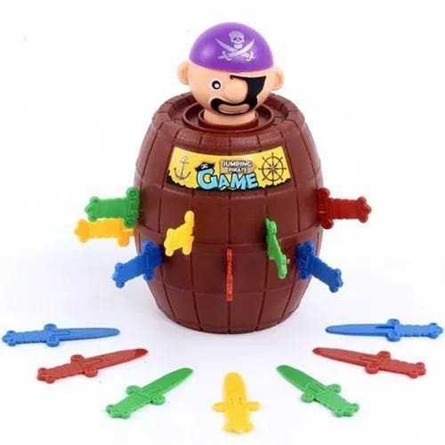 Teste a sua sorte. Divertido brinquedo para os membros da família e amigos. Como Brincar: Divida a quantidade de espadas entre você e seus amigos e cada um enfia a espada no barril, quem acionar o pirata deverá girar a roleta na parte inferior do barril e pagar o mico. Atenção: pode haver variação de cores. Contém: 16 adagas, 1 roleta, 1 barril,1 pirata Marca: Unik Toys Dimensões da embalagem: 17x11x12cm Peso aproximado da embalagem com produto: 0,200Kg Idade recomendada: +3 anos Selo de segurança Inmetro: CE-BRI/INNAC00852-01A NM300/2002