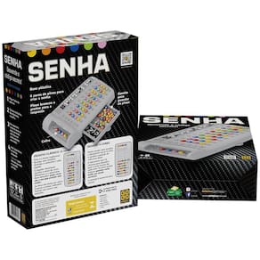 Quais são os materiais principais do jogo? O Jogo Senha é composto por peças de Plástico e tabuleiro/caixa de Papel Cartão.