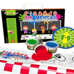 Coloque a venda nos olhos, gire a roleta e, ande pelo tapete, mas cuidado Gelecas são estrategicamente colocadas no caminho. Quem consegue evitar de pisar nas gelecas para ganhar Está brincadeira exige equilíbrio, noção de espaço e estimula todos os sentidos. Para compensar a ausência da visão, a criança aguça a audição, olfato e percepção.