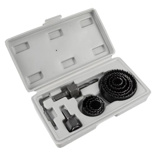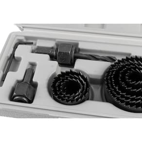 CONTEÚDO: - 8 unidades de Serras: Medidas das Serras: 3/4"(19mm)/ 7/8" (22 mm) / 1.1/8" (29mm) / 1.1/4" (32 mm) 1.1/2" (38 mm) / 1.3/4" (44mm) / 2" (51 mm) e 2.1/2" (64 mm) - 2 unidades Hastes: 1/4" e 3/8" - 1 unidade: Chave Allen - 1 Estojo