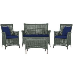 Jogo Sofá 2 Poltronas e Mesa Igapó Marrom E10 Trama autêntico Verde
