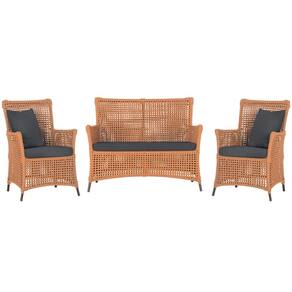 Jogo Sofá e 2 Poltronas de Área Igapó Alumínio Pintura Marrom Corda Náutica Estofado 11 Trama - Laranja
