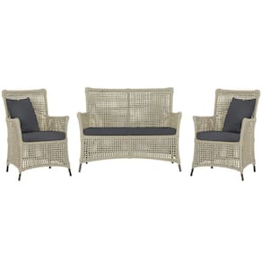 Jogo Sofá e 2 Poltronas de Área Igapó Alumínio Pintura Marrom Corda Náutica Estofado 11 Trama - Bege Médio