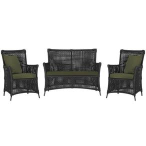 Jogo Sofá e 2 Poltronas de Área Igapó Alumínio Pintura Marrom Corda Náutica Estofado 13 Trama - Preto