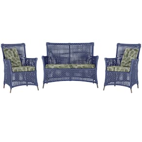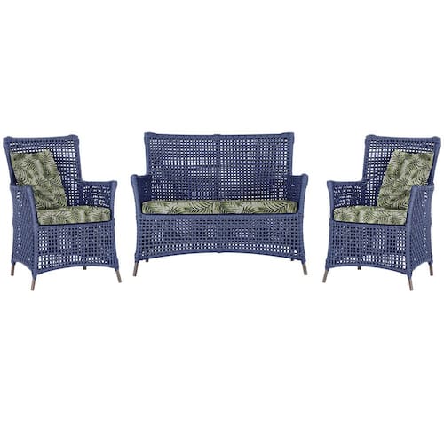 Jogo Sofá e 2 Poltronas de Área Igapó Alumínio Pintura Marrom Corda Náutica Estofado 5 Trama - Azul