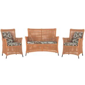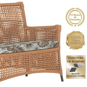 Jogo Sofá e 2 Poltronas de Área Igapó Alumínio Pintura Marrom Corda Náutica Estofado 6 Trama