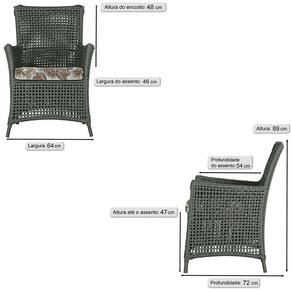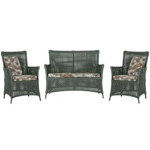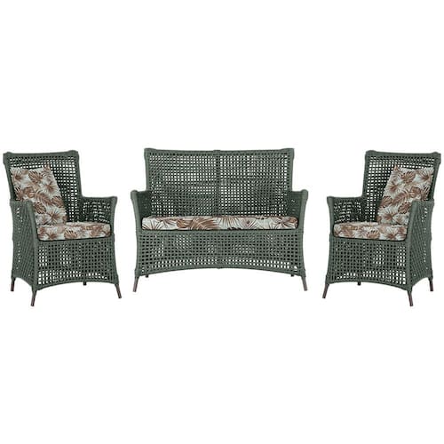 Jogo Sofá e 2 Poltronas de Área Igapó Alumínio Pintura Marrom Corda Náutica Estofado 6 Trama - Verde Musgo