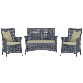 Jogo Sofá e 2 Poltronas de Área Igapó Alumínio Pintura Marrom Corda Náutica Estofado 7 Trama - Prata
