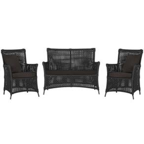 Jogo Sofá e 2 Poltronas de Área Igapó Alumínio Pintura Marrom Corda Náutica Estofado 9 Trama - Preto