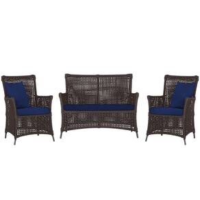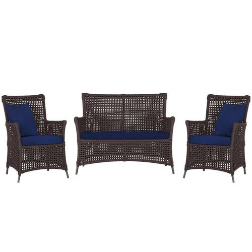 Jogo Sofá e 2 Poltronas de Área Igapó Alumínio Pintura Preta Corda Náutica Estofado 10 Trama - Marrom Chocolate