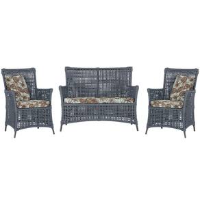 Jogo Sofá e 2 Poltronas de Área Igapó Alumínio Pintura Preta Corda Náutica Estofado 6 Trama - Prata