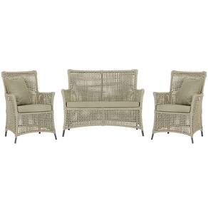 Jogo Sofá e 2 Poltronas de Área Igapó Alumínio Pintura Preta Corda Náutica Estofado 7 Trama - Bege Médio