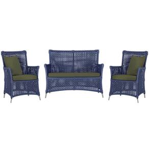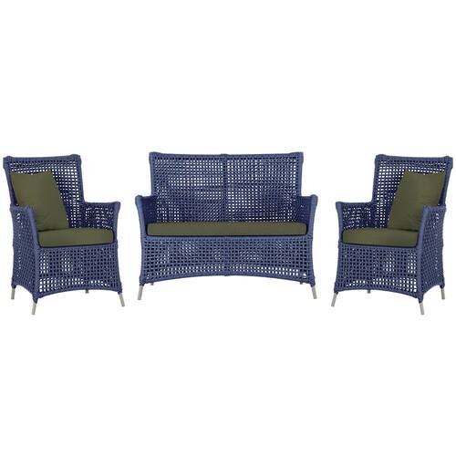 Jogo Sofá e 2 Poltronas de Área Igapó Alumínio - Azul