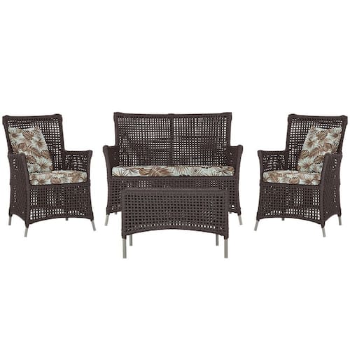 Jogo Sofá e 2 Poltronas e Mesa Igapó Alumínio - Marrom Chocolate
