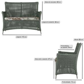 Jogo Sofá e 2 Poltronas e Mesa Igapó Alumínio - Verde
