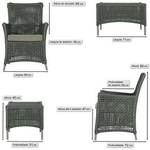Jogo Sofá e 2 Poltronas e Mesa Igapó Alumínio - Verde