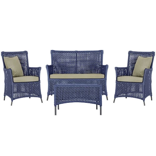 Jogo Sofá e 2 Poltronas e Mesa Igapó Alumínio - Azul