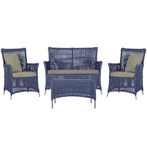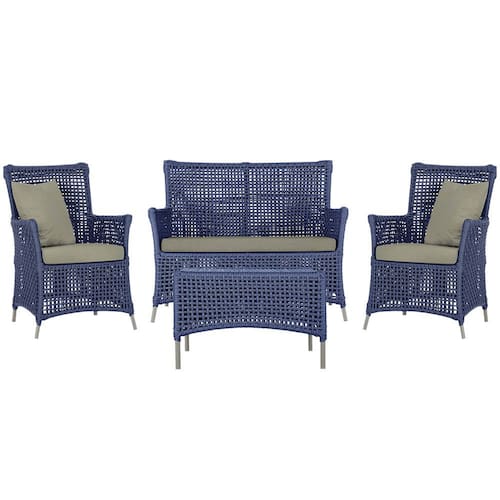Jogo Sofá e 2 Poltronas e Mesa Igapó Alumínio - Azul