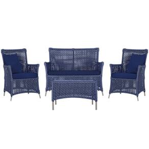 Jogo Sofá e 2 Poltronas e Mesa Igapó Alumínio - Azul