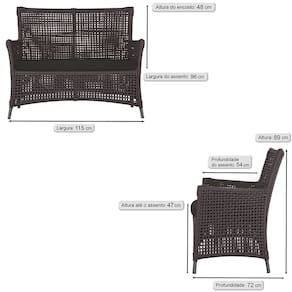 Jogo Sofá e 2 Poltronas e Mesa Igapó Alumínio - Marrom Chocolate