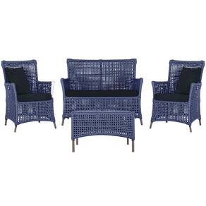 Jogo Sofá e 2 Poltronas e Mesa Igapó Alumínio - Azul