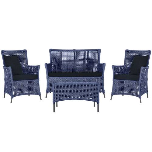Jogo Sofá e 2 Poltronas e Mesa Igapó Alumínio - Azul