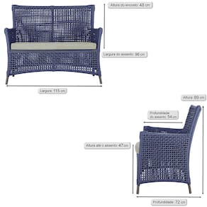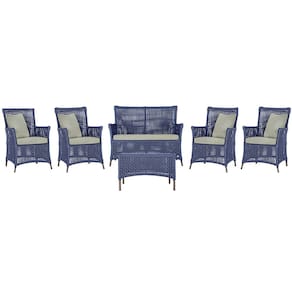 Jogo Sofá e 4 Poltronas e Mesa Igapó Alumínio - Azul