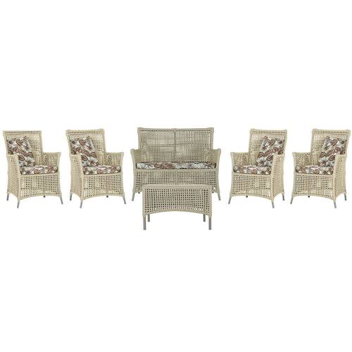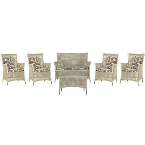 Jogo Sofá e 4 Poltronas e Mesa Igapó Alumínio - Bege Médio