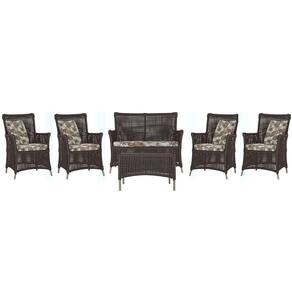 Jogo Sofá e 4 Poltronas e Mesa Igapó Alumínio - Marrom Chocolate