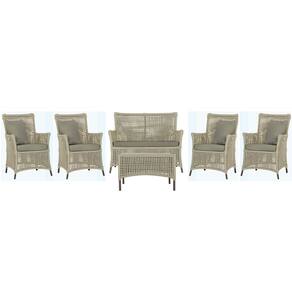 Jogo Sofá e 4 Poltronas e Mesa Igapó Alumínio - Bege Médio