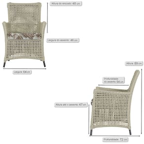 Jogo Sofá e 4 Poltronas e Mesa Igapó Alumínio - Bege Médio