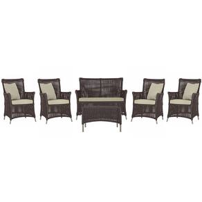 Jogo Sofá e 4 Poltronas e Mesa Igapó Alumínio - Marrom