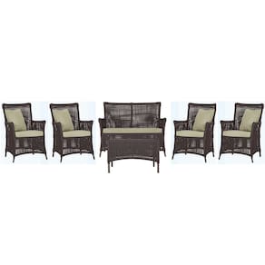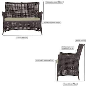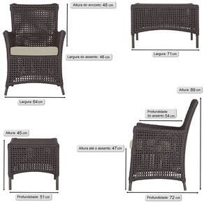 Jogo Sofá e 4 Poltronas e Mesa Igapó Alumínio - Marrom Chocolate