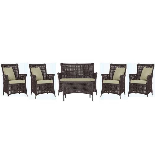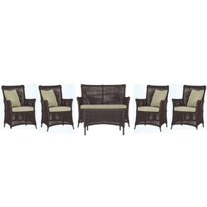 Jogo Sofá e 4 Poltronas e Mesa Igapó Alumínio - Marrom Chocolate