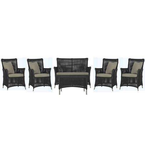 Jogo Sofá e 4 Poltronas e Mesa Igapó Alumínio - Preto