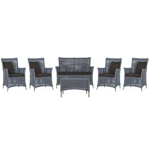 Jogo Sofá e 4 Poltronas e Mesa Igapó Alumínio - Prata
