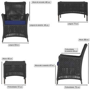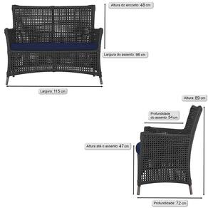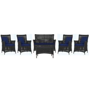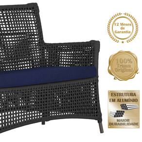 Jogo Sofá e 4 Poltronas e Mesa Igapó Alumínio - Preto