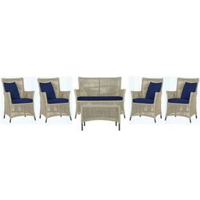 Jogo Sofá e 4 Poltronas e Mesa Igapó Alumínio - Bege Médio