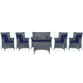 Jogo Sofá e 4 Poltronas e Mesa Igapó Alumínio - Prata