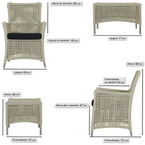 Jogo Sofá e 4 Poltronas e Mesa Igapó Alumínio - Bege Médio