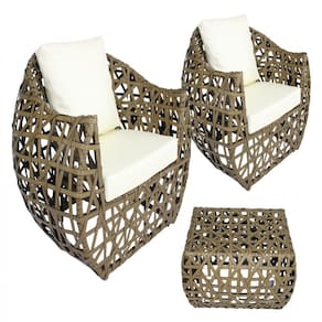 Jogo Sofá e Poltronas Dubai em Alumínio Jardim, Área, Sala Trama - Marrom Cacau