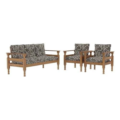 O Jogo Sofá Madeira Maciça 3 lugares e 2 Poltronas Liz Multimóveis é produzido em madeira maciça de pinus proveniente de reflorestamento e possui almofadas soltas preenchidas com flocos de espuma e revestidas em poliéster, que garante maior conforto e durabilidade. Uma ótima opção para deixar sua sala de estar acolhedora para curtir os melhores momentos com a família ou amigos.