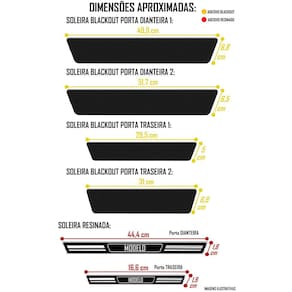 Estão inclusas 4 soleiras de porta e 8 soleiras em vinil para proteger as 4 portas do seu veículo.