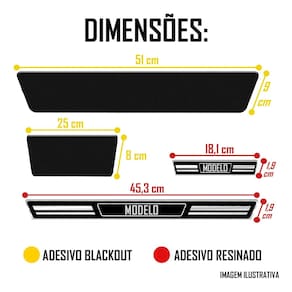 TAMANHO DA SOLEIRA: VINIL PRETO (BLACKOUT - SOLEIRA PRETA POR BAIXO): Porta DIANTEIRA: Tamanho: 51 cm x 9,0 cm Porta TRASEIRA: Tamanho: 25 cm x 8,0 cm