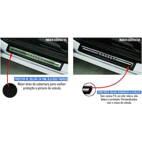 A Soleira de Porta protege o carro contra riscos além de proporcionar um visual esportivo para o veículo. Confeccionada em adesivo resinado, a Soleira de Porta é autocolante e de fácil instalação. Estão inclusas 4 soleiras de porta e 4 soleiras em vinil para proteger as 4 portas do seu veículo.